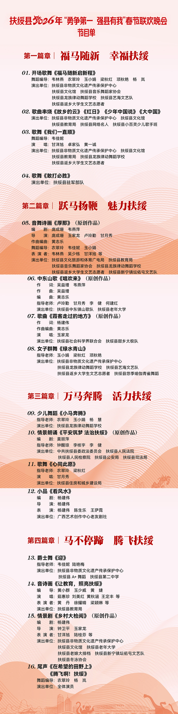 人民網扶綏2月9日電 隨著春節臨近,扶綏縣2026年春節聯歡晚會各項籌備工作正有序推進。記者從籌備組…的講話、報告。