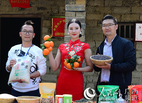 吳軍(左)通過網絡平台推銷扶貧農產品。浦北縣脫貧攻堅信息宣傳辦供圖