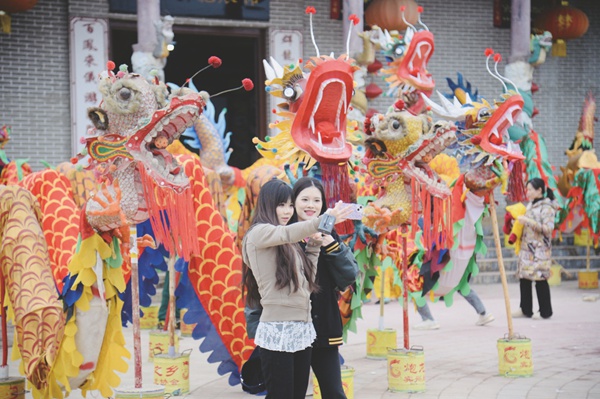 游客在賓陽縣炮龍文化園拍照打卡。(資料圖)