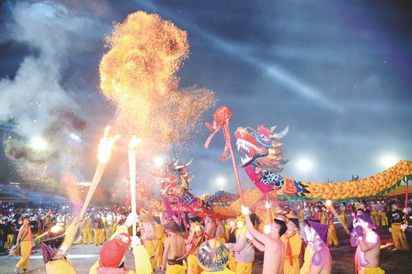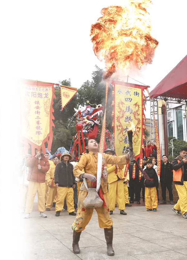 今年初舉行的賓陽非遺巡游活動,10歲女孩擔任火焰手引人注目。(資料圖)