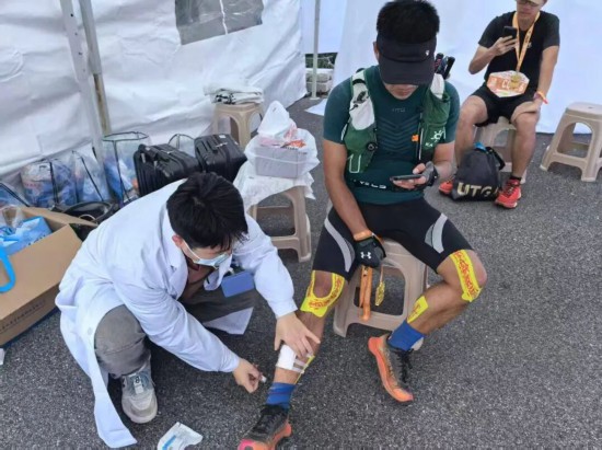 除了專業的醫療救助,保障團隊更是選手們最堅實的后盾與最溫暖的依靠。在陡峭的爬坡點、在疲憊的深夜賽段,醫護人員一句句“加油”“注意安全”“需要幫助嗎”,給予了選手莫大的精神鼓舞。對於因傷退賽的選手,醫護人員始終耐心陪伴、悉心照料,直至將其安全移交,充分體現了對每一位參賽者生命安全和身體健康的高度尊重。