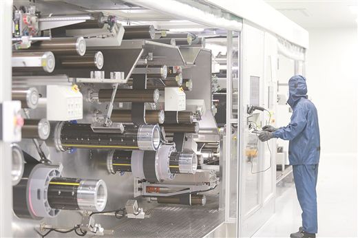 在廣西寧福新能源科技有限公司二工廠車間,新投產的智能化生產線每分鐘能下線150顆40mm型號電池。記者陳可夫/攝