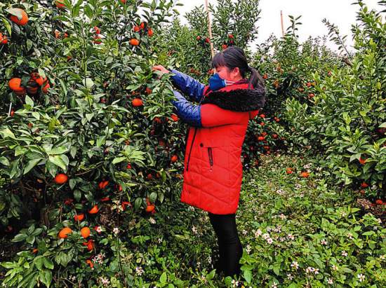 果户李卫春在果园里采摘沃柑。记者凌剑伊 摄