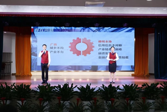 决赛设置了PPT现场展示与现场答辩两大环节,全面考验参赛队伍的专业能力、表达能力与应变能力。柳州银行派出了陈华雨、陈星宇、张榆阗三名青年突击队的骨干,以《普惠润泽工业血脉,金融赋能产业腾飞》为核心主题,通过三个鲜活案例、详实数据诠释了柳州银行深耕本土、服务实体的金融实践。参赛队员展示了柳州银行以“工业快贷”托举产业脊梁,以“科技贷”点亮实验星火,以“螺蛳粉产业贷”飘香田园,把“民生金融”送进市井巷陌,为百姓添香增温的举措,生动呈现了普惠金融穿透传统工业、高新技术、特色食品三大赛道,为企业和个体工商户“输血补气”,为柳州打造“万亿工业强市”注入金融动能的责任担当。