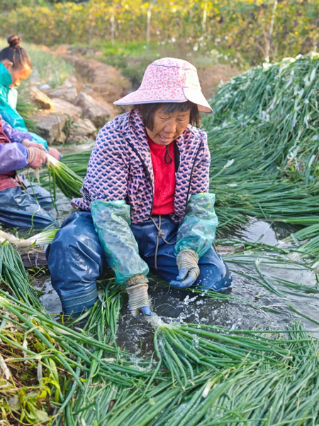 香葱产业的蓬勃发展,不仅让种植户直接受益,更延伸出一条完整的产业链。香葱清洗、分拣、运输、包装等配套环节相继兴起,为周边群众创造了大量“家门口的岗位”。仅香葱采收、清洗、运输等环节,每年就能吸纳劳动力近1300余人次,在种植与采收的高峰期,日均用工量可达150余人。“不用外出打工,在家门口就能上班,既能照顾老人孩子,香葱集中采收期每天还能挣200元左右,日子踏实又有奔头。”正在清洗香葱的村民李大姐开心地说。