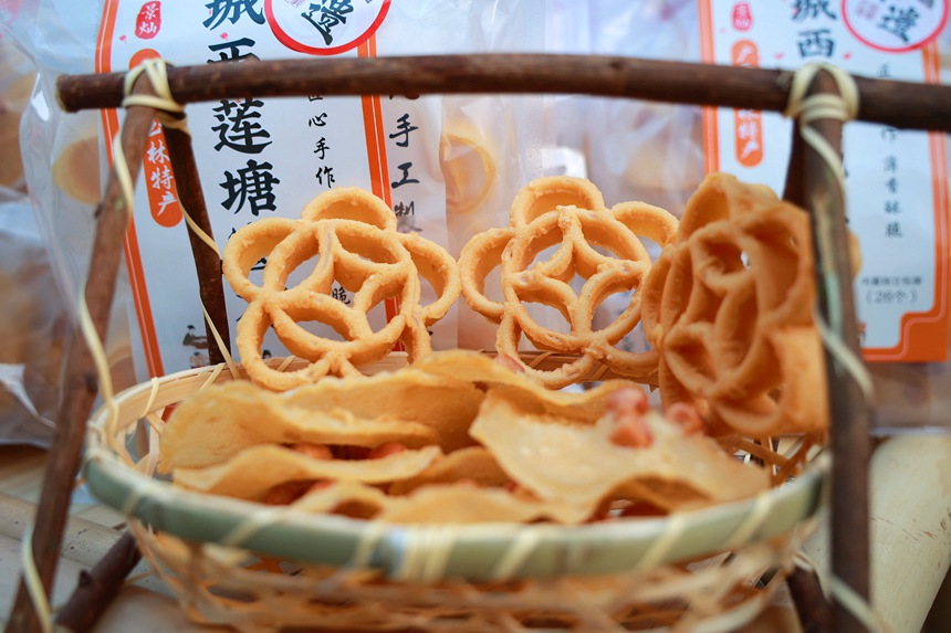 腊月的桂东南天气晴好,年货制作也拉上了日程,广西玉林市玉州区城西街道莲塘村的街巷里弥漫着阵阵香气,家家户户的灶台上火光摇曳,滚烫的油锅中,一片片薄如蝉翼的地豆饼翻滚跳跃,十余秒便蜕变为金黄油亮的模样,“咔吱”一声咬下,米香混着花生与芝麻的醇厚,这是刻在玉林人记忆里的年味,更是莲塘村以小产业撬动乡村振兴的生动注脚。