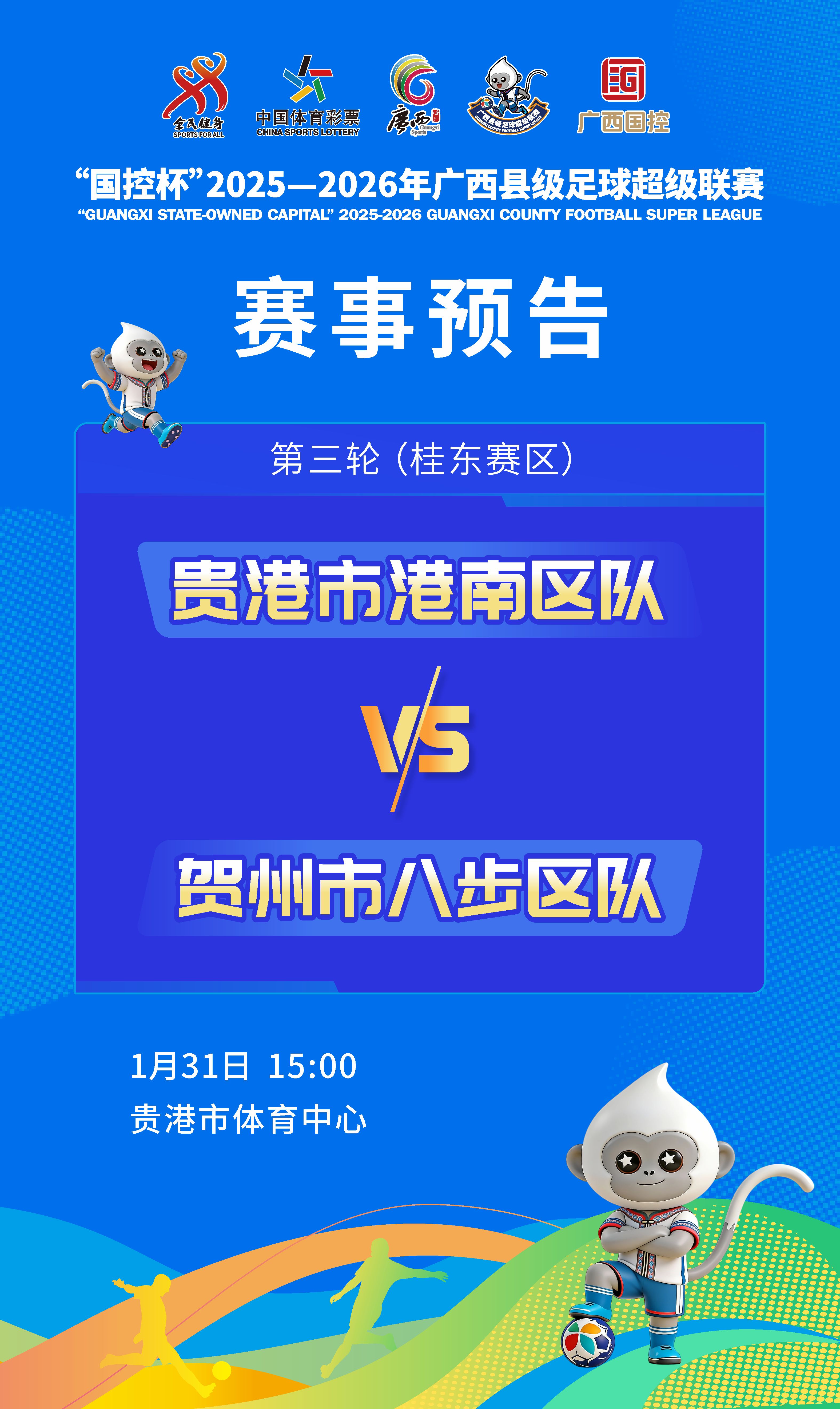 人民网南宁1月29日电 (庞惠文)1月31日至2月1日,“国控杯”2025—2026年广西县级足球超级联赛第三轮赛事即将来袭。作为广西县域足球的顶级赛事,本周末桂东、桂南两大赛区将同步迎来5场关键对决,来自全区多地的县域强队将在绿茵场上展开激烈碰撞,用汗水与热爱书写属于广西足球的乡土传奇。
