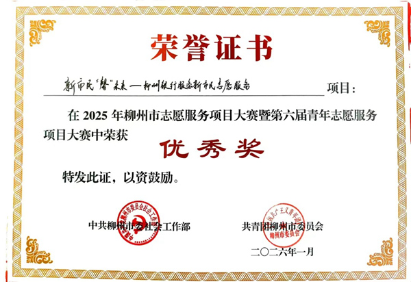 近日,2025年柳州市志愿服务项目大赛暨第六届青年志愿服务项目大赛结果揭晓,柳州银行“新市民‘馨’未来”志愿服务项目凭借鲜明特色与扎实成效斩获优秀奖,成为本次大赛中全市唯一获奖的金融机构,彰显了柳州银行在志愿服务领域的责任担当与创新实践。